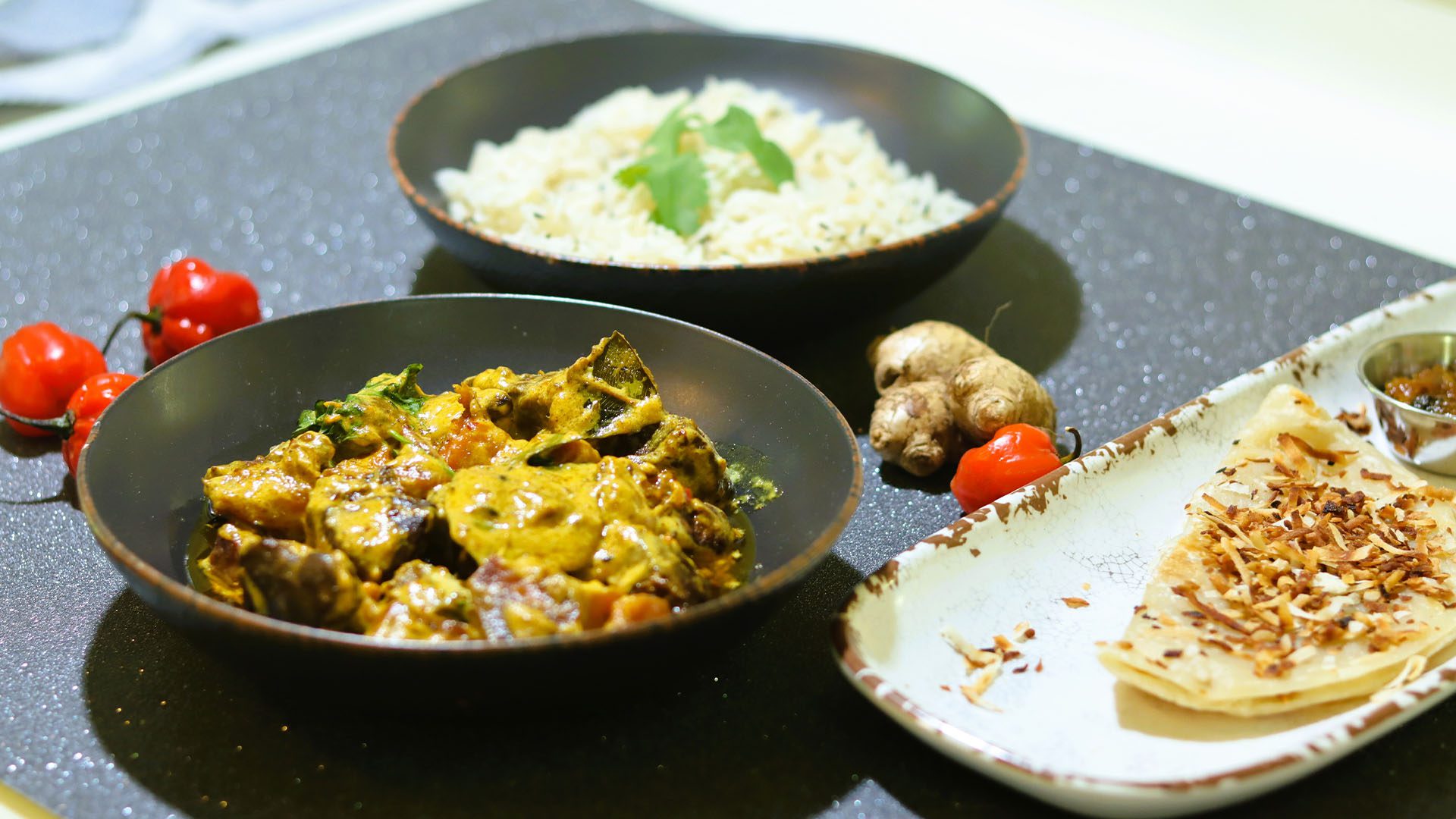 Local pork simmered in a coconut, curried sauce. It’s a medium spicy dish, but you can request spicy! This product contains coconut.