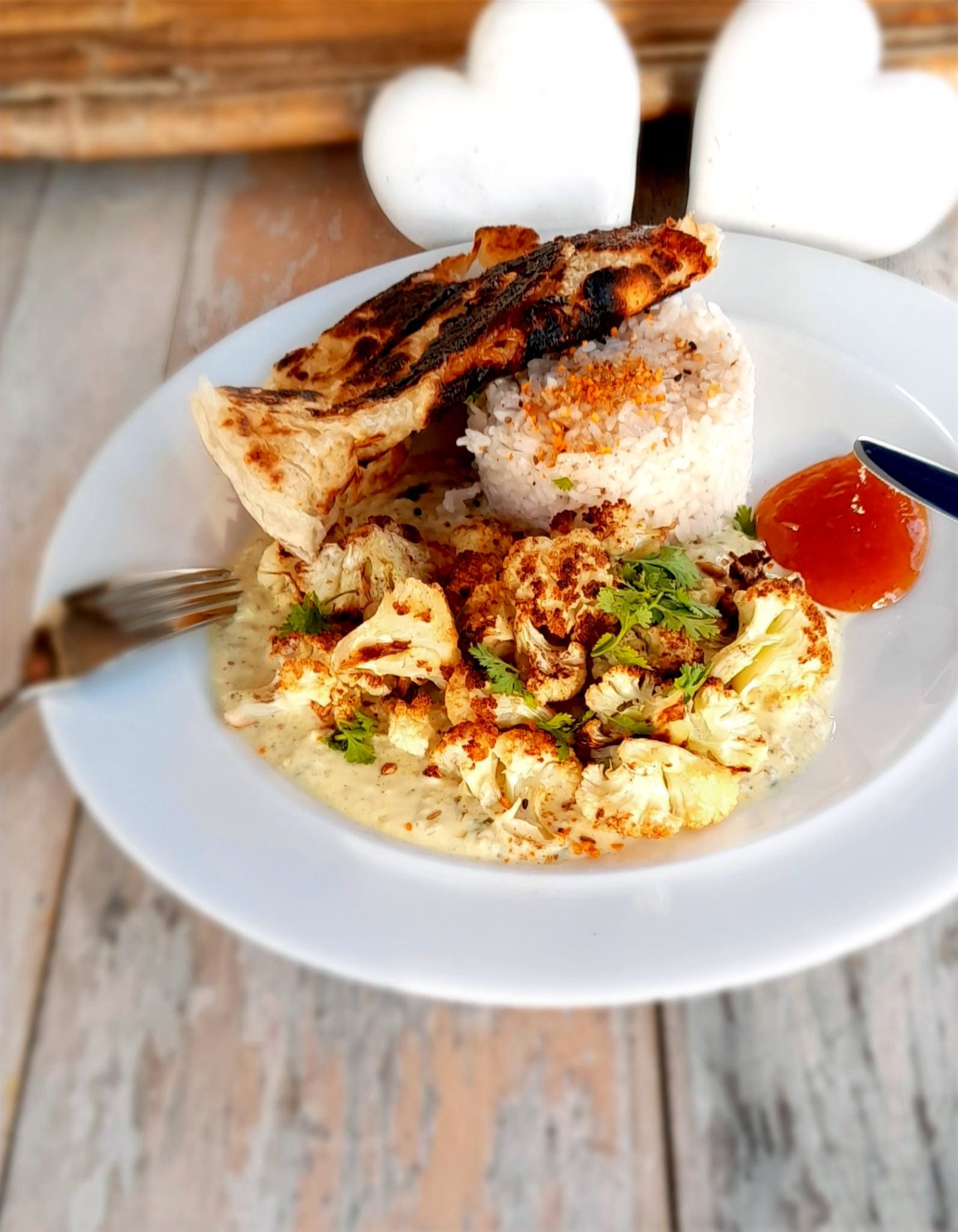 Served with a chutney. Add a side of rice or roti to complete.